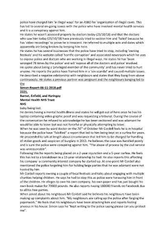 making up complaints about him. “My neighbours are calling up the police after forging the