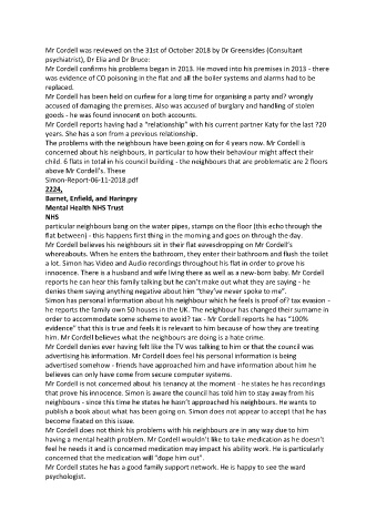 Mr Cordell was reviewed on the 31st of October 2018 by Dr Greensides (Consultant