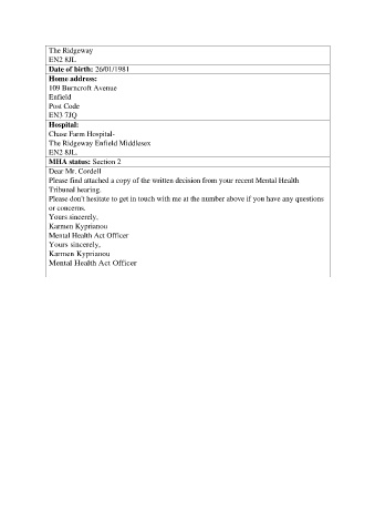 Please find attached a copy of the written decision from your recent Mental Health
