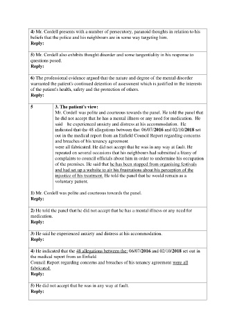 5) Mr. Cordell also exhibits thought disorder and some tangentiality in his response to