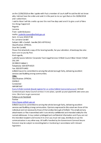 on the 15/06/2018 on the I spoke with Paul a member of court staff he said he did not know
