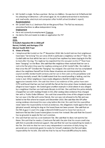 • I telephoned Ms Cordell on the 7 November 2018. Ms Cordell told me that neighbours