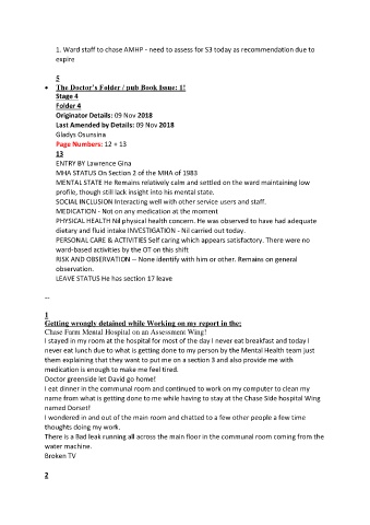 1. Ward staff to chase AMHP - need to assess for S3 today as recommendation due to