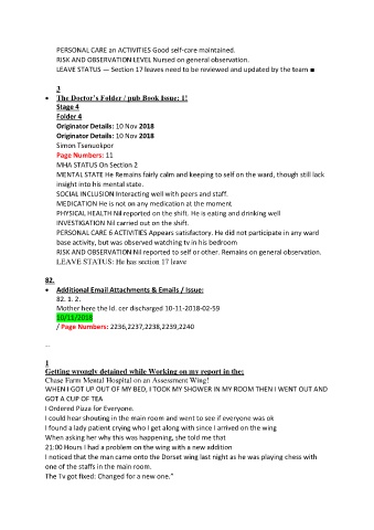 PERSONAL CARE 6 ACTIVITIES Appears satisfactory. He did not participate in any ward