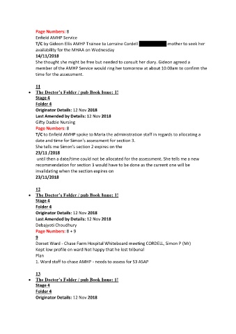 T/C by Gideon Ellis AMHP Trainee to Lorraine Cordell 07807 333545 mother to seek her