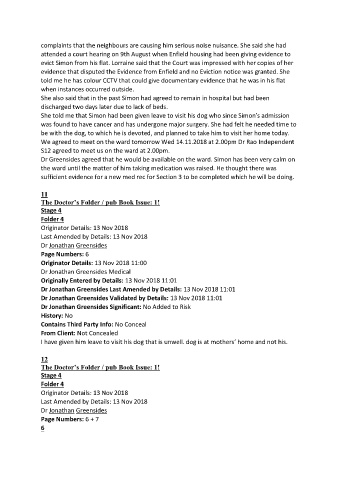 attended a court hearing on 9th August when Enfield housing had been giving evidence to