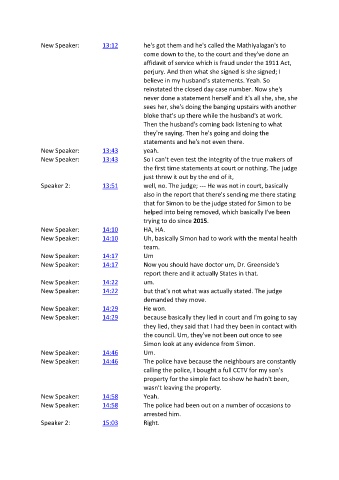 New Speaker: 14:46 The police have because the neighbours are constantly