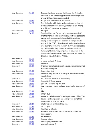 New Speaker: 34:16 Because I've been phoning that I want the first Asbo