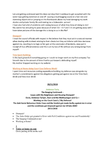 tub and getting undressed and this does not stop their I continue to get assaulted with the