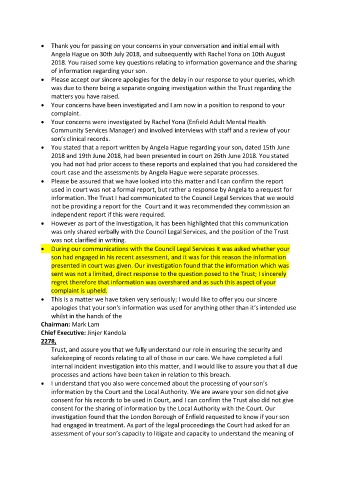 • Your concerns were investigated by Rachel Yona (Enfield Adult Mental Health