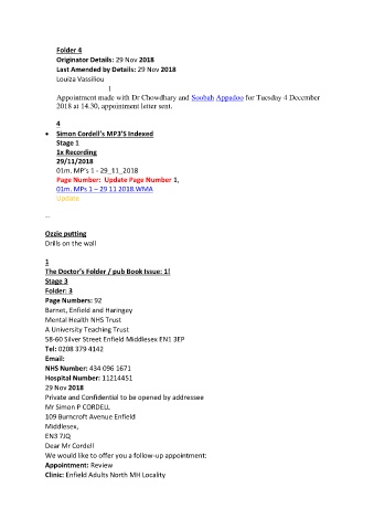 Appointment made with Dr Chowdhary and Soobah Appadoo for Tuesday 4 December
