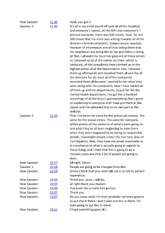 New Speaker: 23:07 Do you know what I'm most probably not even goanna