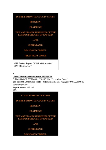 106- CLAIM NUMBER: E00ED049 – NHS Patient Dentist Report OF MR MARKANDU