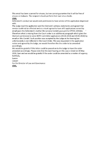 We would be grateful if this letter could be passed on to the Judge to have the order