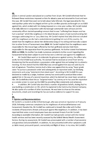 Service. During my assessment, Mr Cordell was preoccupied with a number of persecutory