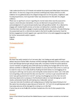 evidence he has gathered about the alleged wrongs done to him by police, neighbours and