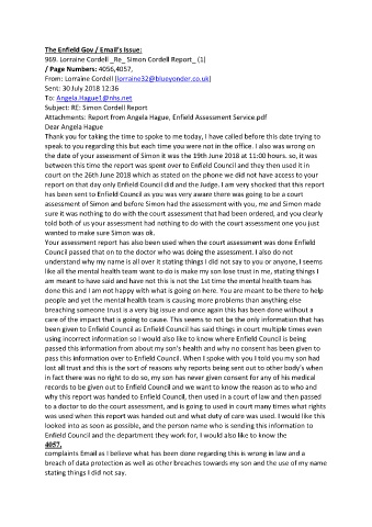 Your assessment report has also been used when the court assessment was done Enfield
