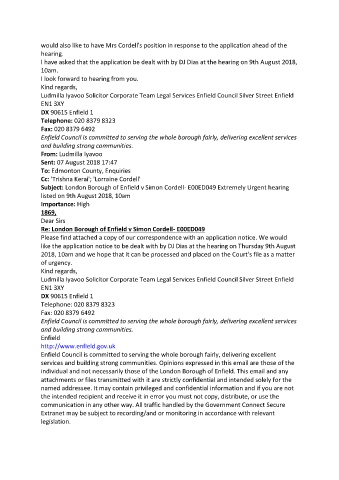 Subject: London Borough of Enfield v Simon Cordell- E00ED049 Extremely Urgent hearing