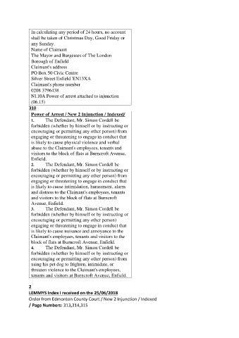 Order from Edmonton County Court / New 2 Injunction / Indexed