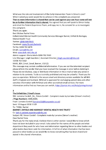 Subject: RE: Simon Cordell - Complaint made by Lorraine (Simon's mother)