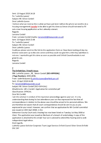 expressed in your email. However, we confirm that an application for Mr Cordell committal