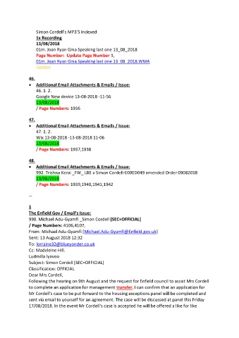 Following the hearing on 9th August and the request for Enfield council to assist Mrs Cordell