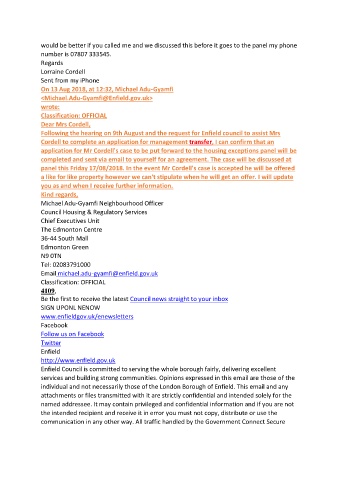 Following the hearing on 9th August and the request for Enfield council to assist Mrs