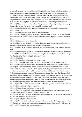 they're mentally attacking me and my sanity. And that this is amounting in the way that