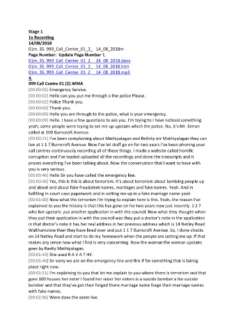 [00:00:09] Hello you are through to the police, what is your emergency.