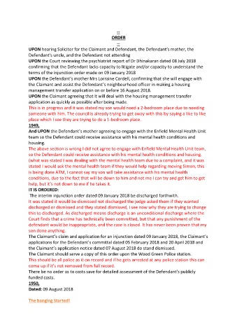 The Claimant should serve a copy of this order upon the Wood Green Police station.