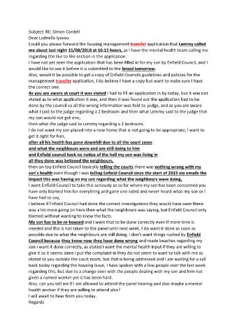 son's health even though I was telling Enfield Council since the start of 2015 via emails the