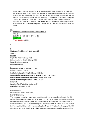him that ‘some clinical information was shared by the Trust with the London Borough of