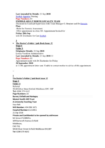 Discussed in Caseload Supervision with Team Manager G. Benyure and Dr Hussain.