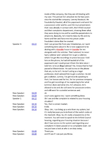 Speaker 1: 04:12 Ok I see and the complaint is related to your housing