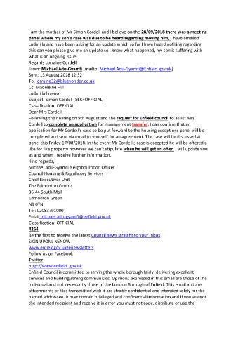 Following the hearing on 9th August and the request for Enfield council to assist Mrs