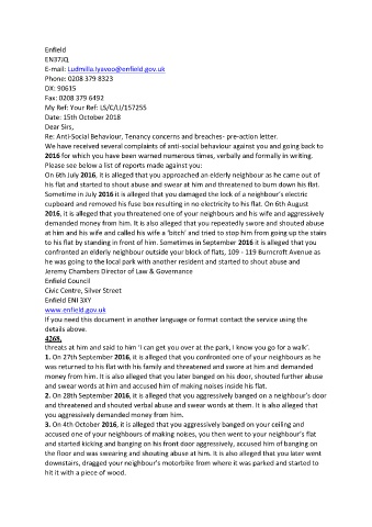 Re: Anti-Social Behaviour, Tenancy concerns and breaches- pre-action letter.