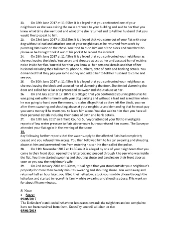 29. On 2nd January 2018 at 6.30pm, it is alleged that you stood outside your neighbour’s