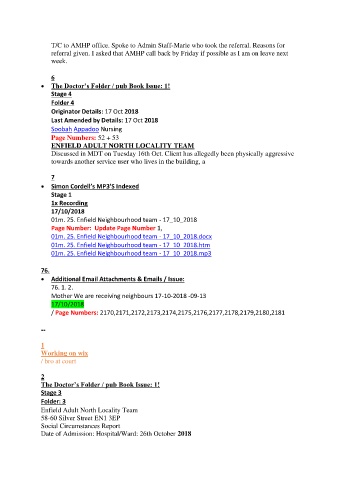 referral given. I asked that AMHP call back by Friday if possible as I am on leave next