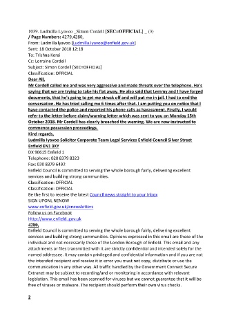 Mr Cordell called me and was very aggressive and made threats over the telephone. He's