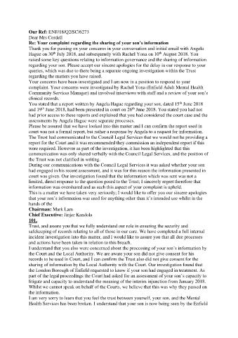 the London Borough of Enfield requested to know if your son had engaged in treatment. As