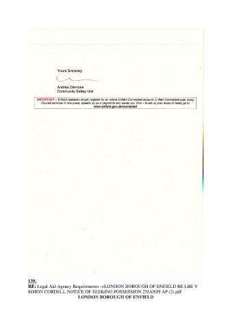 139, RE: Legal Aid Agency Requirements ->LONDON BOROUGH OF ENFIELD RE LBE V SIMON CORDELL NOTICE OF SEEKING POSSESSION 25JAN19 AP (2).pdf LONDON BOROUGH OF ENFIELD