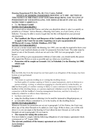 NOTICE OF SEEKING POSSESSION HOUSING ACT 1985 - SECTION 83