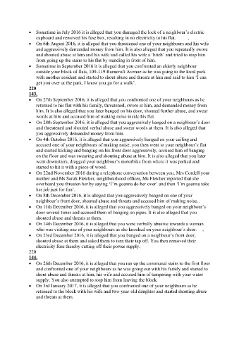 • On 6th August 2016, it is alleged that you threatened one of your neighbours and his wife