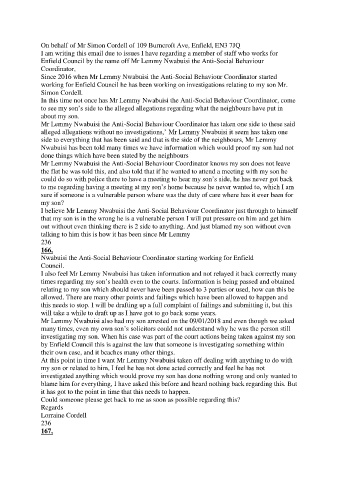 working for Enfield Council he has been working on investigations relating to my son Mr.