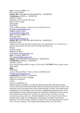 I have sent the requested files via egress switch today (16/02/2019) Please confirm receipt