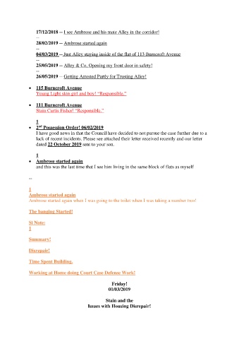 04/03/2019 -- Just Alley staying inside of the flat of 113 Burncroft Avenue