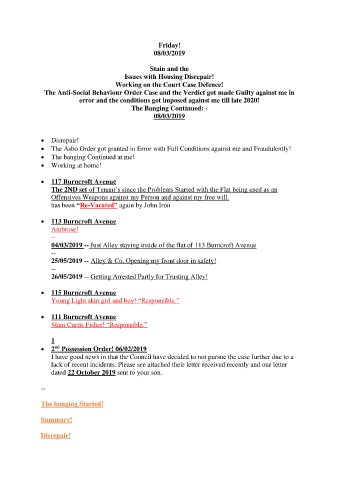 • The Asbo Order got granted in Error with Full Conditions against me and Fraudulently!