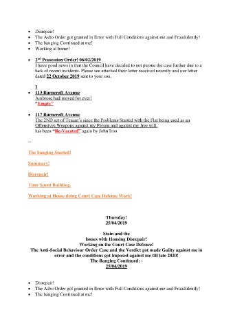 • The Asbo Order got granted in Error with Full Conditions against me and Fraudulently!