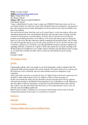 who had sent an email to the Enfield Council and the Lower Court House as well. What he or