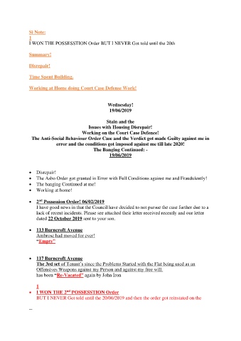 BUT I NEVER Got told until the 20/06/2019 and then the order got reinstated on the